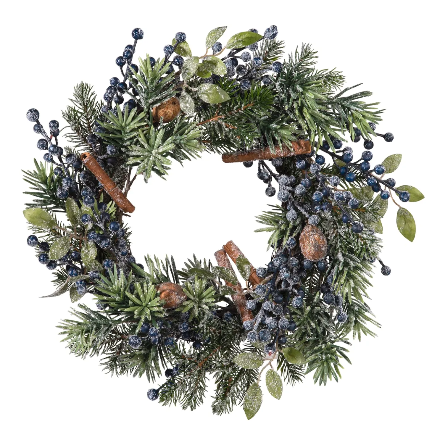Die Grunen Zweige Mit Den Blauen Beeren In Kombination Mit Den Zierlichen Schneeflocken Zaubern Eine Weihnachtliche Atmosphare. Damit Ist Dieser Kranz Ein Schoner Blickfang Fur Die Tur.