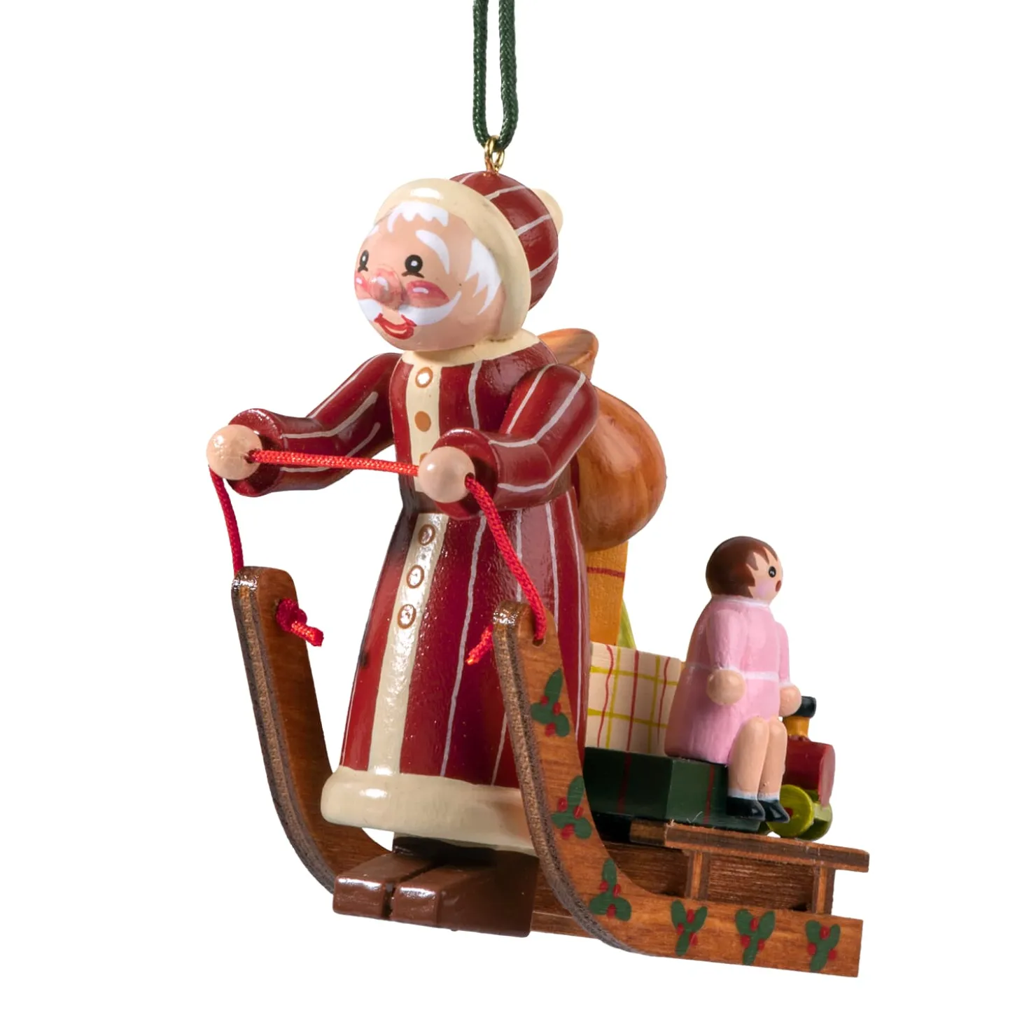Weihnachtsmann Mit Schlitten Aus Holz Zum Aufhangen.