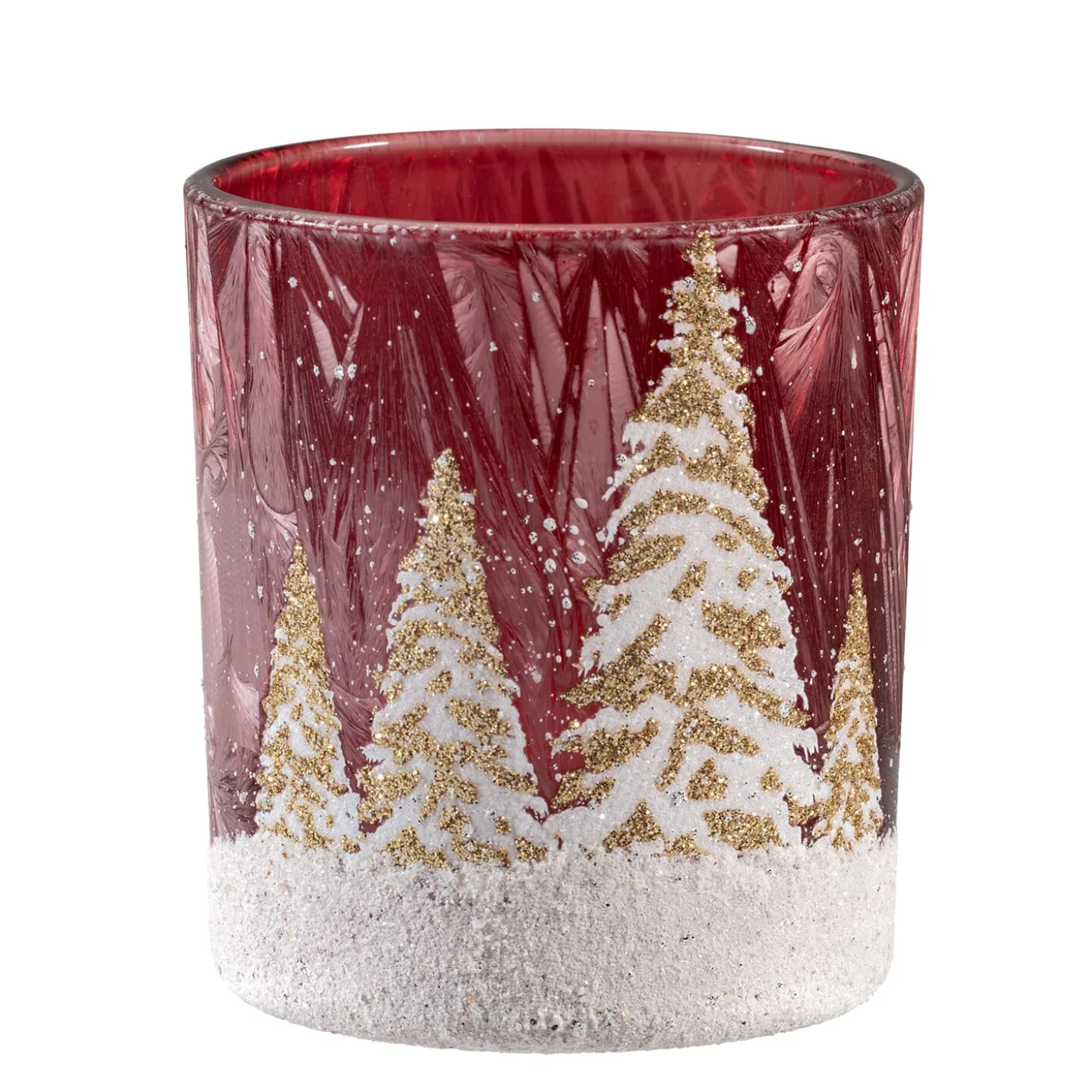 Das Windlicht In Den Klassischen Weihnachtsfarben Zaubert Eine Winterliche Atmosphare, Wahrend Der Kerzenschein Ein Behagliches Licht Verstromt.