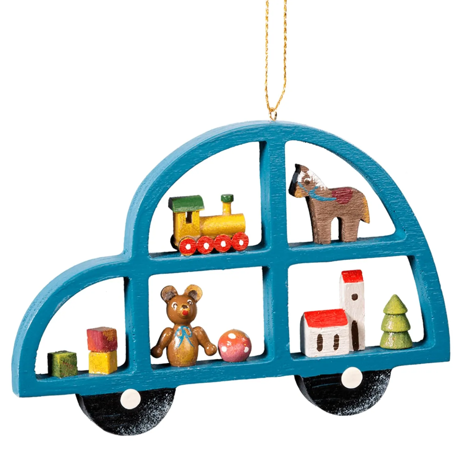Umrahmt Von Der Blauen Karoserie Kommen Die Geladenen Spielsachen Wie Lok, Holzpferdchen, Ball, Teddy, Bauklotze Oder Spielehauschen Besonders Schon Zur Geltung Und Werden Unterm Weihnachtsbaum Fur Viel Freude Sorgen!
