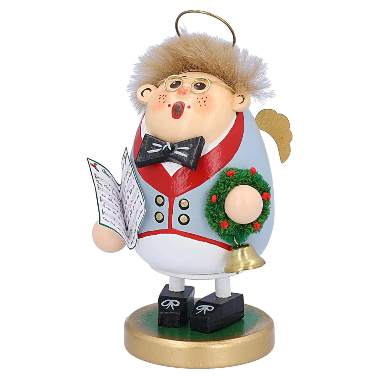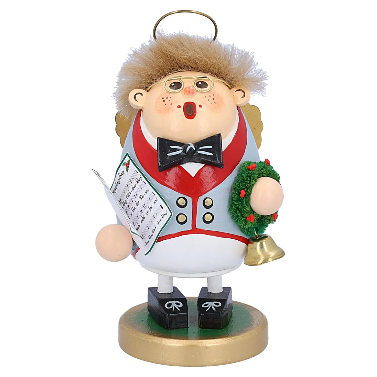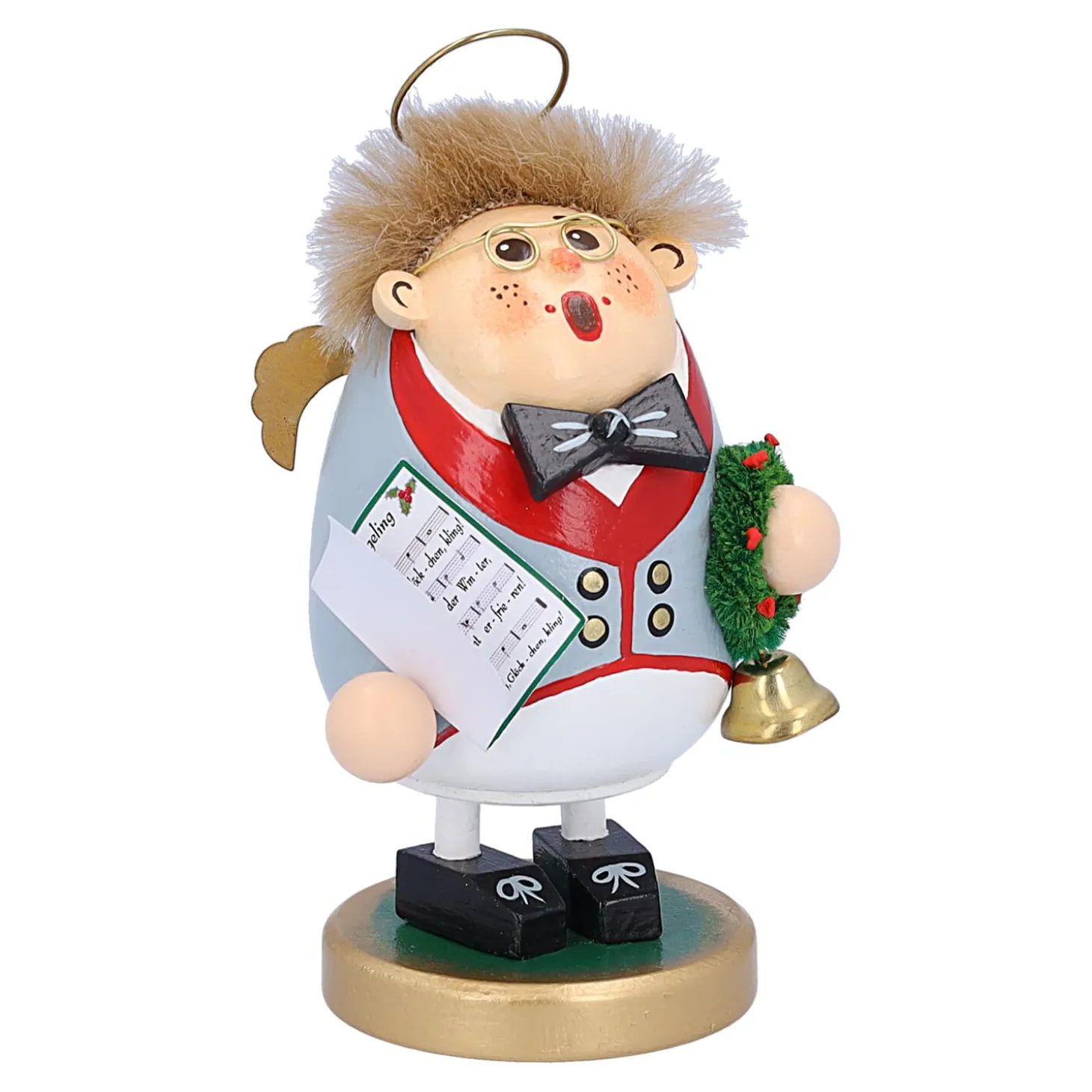 Kling, Glockchen, Klingelingeling – Wer Kennt Es Nicht? Das Frohliche Kinderlied Fur Die Vorweihnachtszeit, Welches Erstmals Vor 200 Jahren Im Jahr 1873 Veroffentlich Wurde Und Sich Nach Wie Vor Groser Beliebtheit Erfreut. Voller Innbrunst Singt Unser Kleiner Orchesterengel Elvin Das Beliebte Weihnachtslied. Mit Fliege Und Frack, Das Notenblatt In Der Einen Und Ein Goldenes Glockchen In Der Anderen Hand, Hat Sich Unser Charmanter Duftl Fur Ihr Personliches Konzert Besonders Zurecht Gemacht.