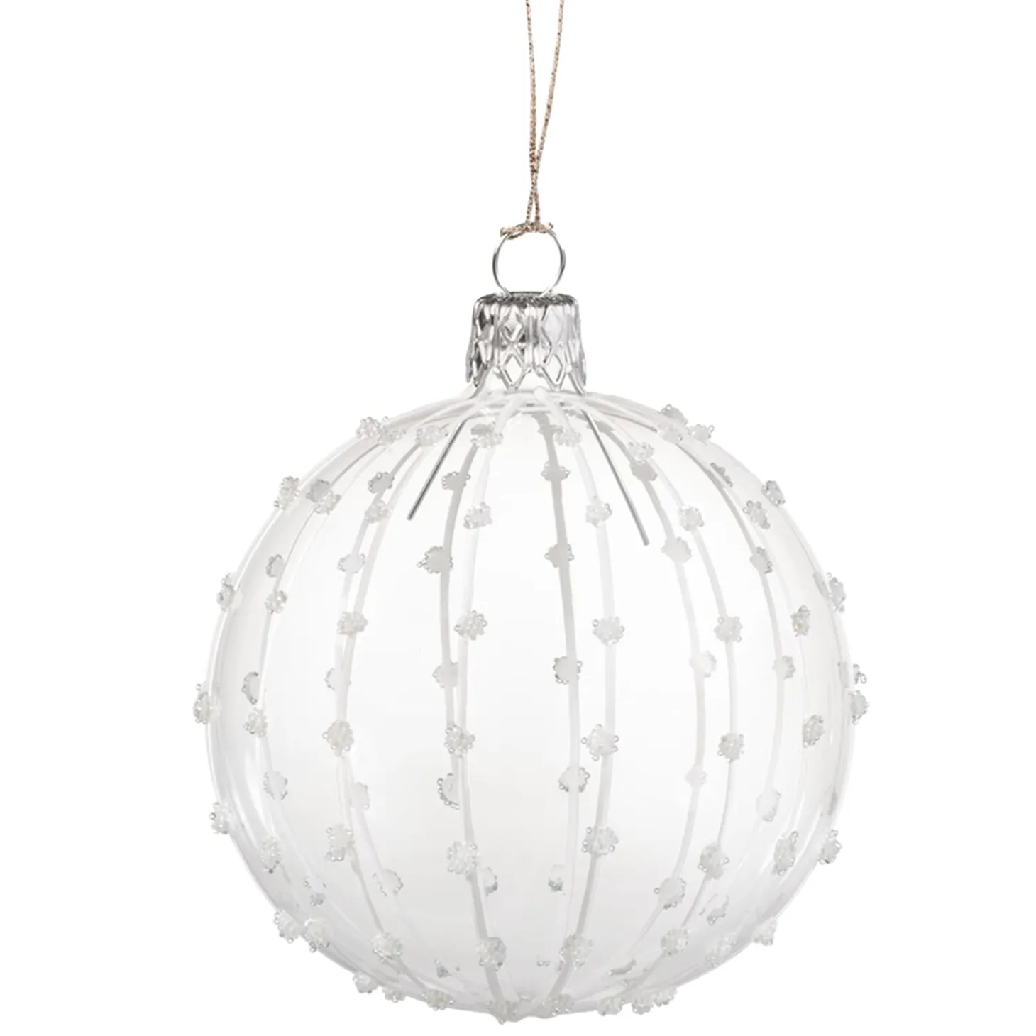 Glaskugel Klar Mit Weisem Glitzerdekor, 7 Cm
