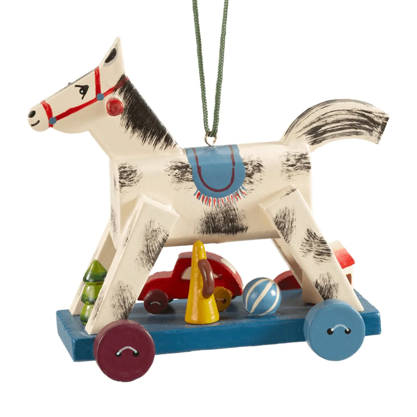 Endlich Haben Wir Die Gelegenheit Uns Unseren Kindheitswunsch Zu Erfullen. Das Schone Kleine Schaukelpferd Tragt Schon Sein Festliches Rotes Zaumzeug Und Seine Blaue Satteldecke. Die Kleinen Bunten Knopfe Aus Holz Wirken Wie Kleine Rader. Unter Dem Spielzeugpferd Stehen Weitere Kleine Spielsachen. Die Vielen Kleinen Liebevollen Details Lassen Das Ornament Realistisch Wirken, So Dass Es Ihnen Viele Jahre Freude Bereitet.