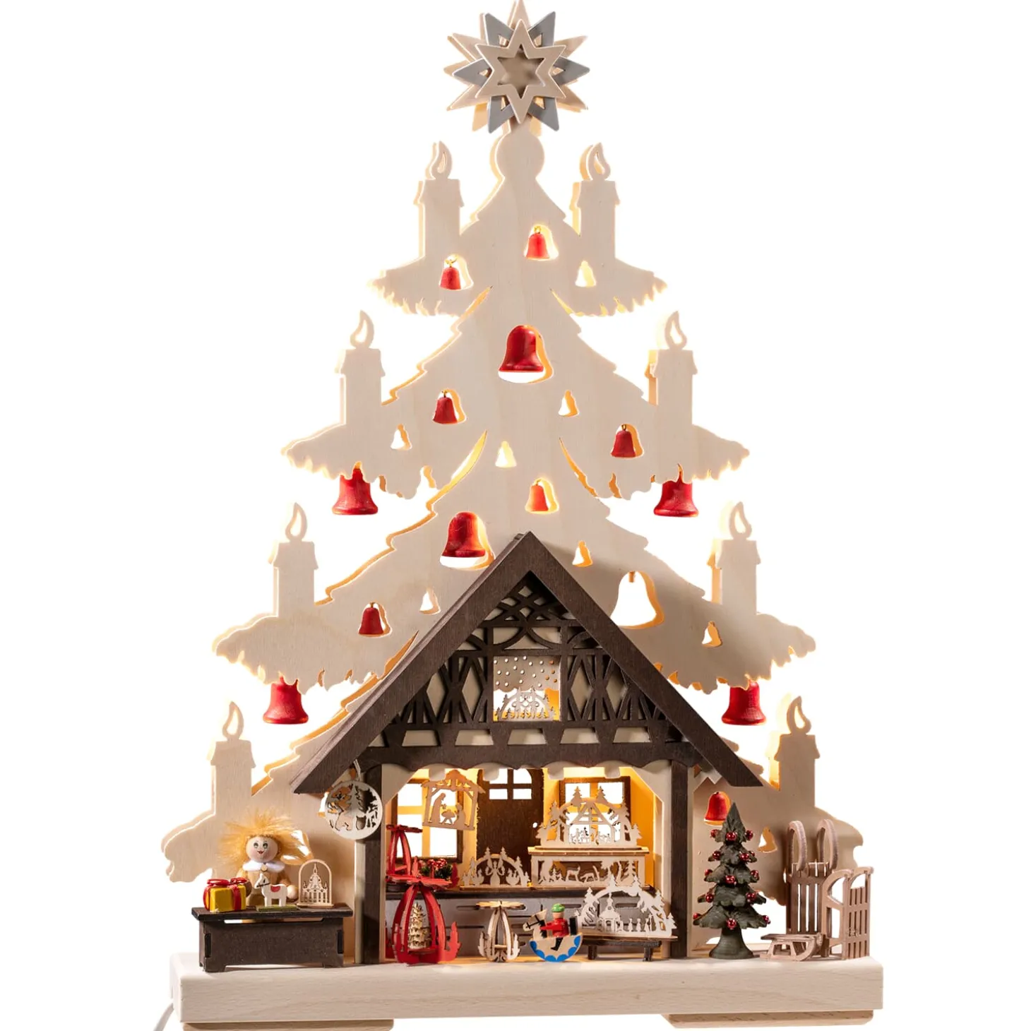 Er Steht Fur Die Hohe Handwerkskunst, Die Die Holzarbeiten Aus Dem Erzgebirge Pragt. Einst Waren Sie Ein Zuverdienst Fur Die Bergleute Im Winter. Heute Sind Schwibbögen Seit Uber 80 Jahren Eine Beliebte Dekoration Fur Die Weihnachtszeit. In Aufwendiger Und Liebevoller Handarbeit, Entstehen Wunderschone Landschaften, Die Durch Die Stimmungsvolle Beleuchtung In Szene Gesetzt Werden. Besonders Wirkungsvoll Erstrahlt Das Licht Des Schwibbögens Auf Dem Fensterbrett. Dort Sorgt Es In Der Kalten Jahreszeit Fur Eine Einladende Atmosphare. Aber Auch Auf Einem Tisch Oder Einem Regal Setzt Ein Schwibbögen Stimmungsvolle Akzente.