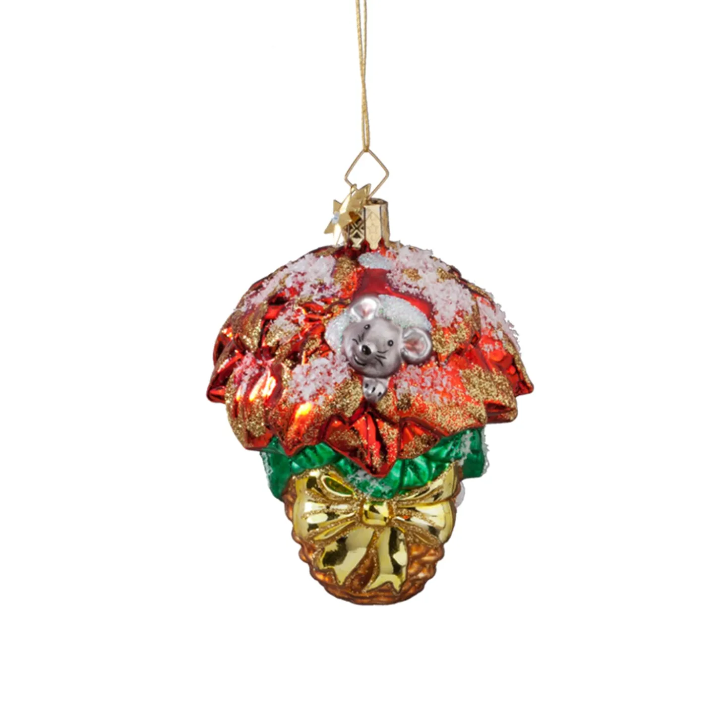 Goldene Glockchen, Silberne Kugeln, Bunter Holzschmuck Und Glitzernde Lichter. Die Weihnachtsdekoration Ist Dieses Jahr Einmal Mehr Gelungen. Farbenfroh Lasst Sie Das Ganze Haus Erstrahlen Und Lasst Vorfreude Auf Das Bevorstehende Weihnachtsfest Aufkommen. Das Eigentliche Highlight Erkennt Man Jedoch Erst Bei Genauerem Hinsehen: Der Weihnachtsstern. Seine Grunen Und Roten Blatter Bilden Den Perfekten, Weihnachtlichen Kontrast, Der Durch Eine Goldene Schleife Erganzt Wird. Das Gefallt Naturlich Auch Der Kleinen Maus Die Frohlich Zwischen Den Blattern Hervorspitzt.